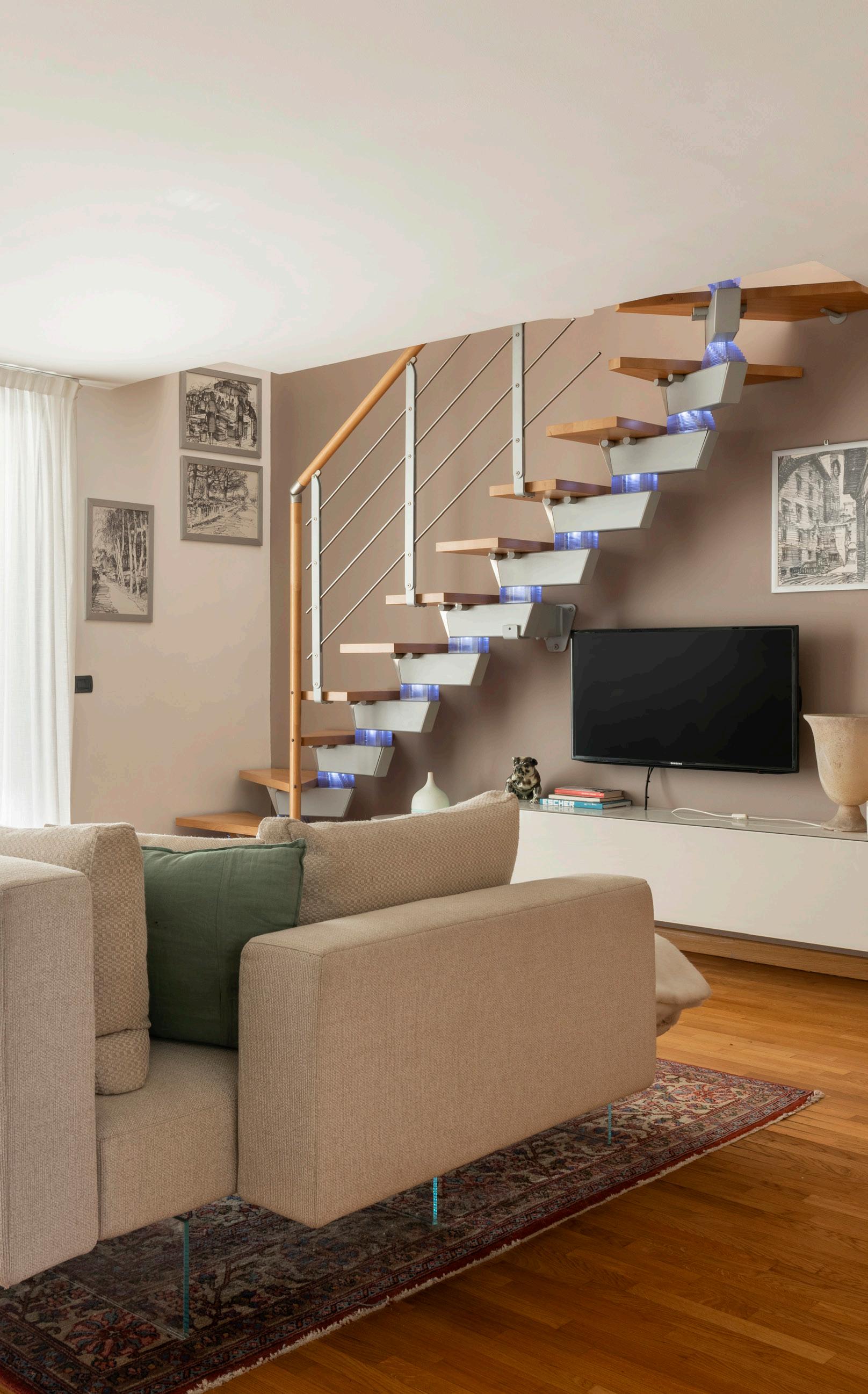 Al piano superiore, una sala raccolta e silenziosa si presta a diventare zona TV, sala lettura o secondo living. Un ambiente riservato, funzionale e indipendente che garantisce flessibilità nell’utilizzo degli spazi e completa la zona notte con discrezione e comfort.