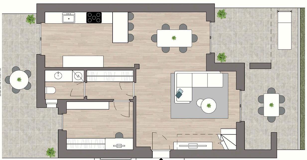 Due spazi verdi esclusivi circondano l’abitazione al piano terra: curati, piantumati e accessibili direttamente dal salone e dalla cucina. Ambienti riservati e vivibili tutto l’anno, perfetti per creare un angolo lounge, far giocare i bambini in sicurezza o ospitare pranzi e cene all’aperto. Ogni metro quadrato è pensato per offrire continuità tra interno ed esterno, amplificando la qualità della vita quotidiana.