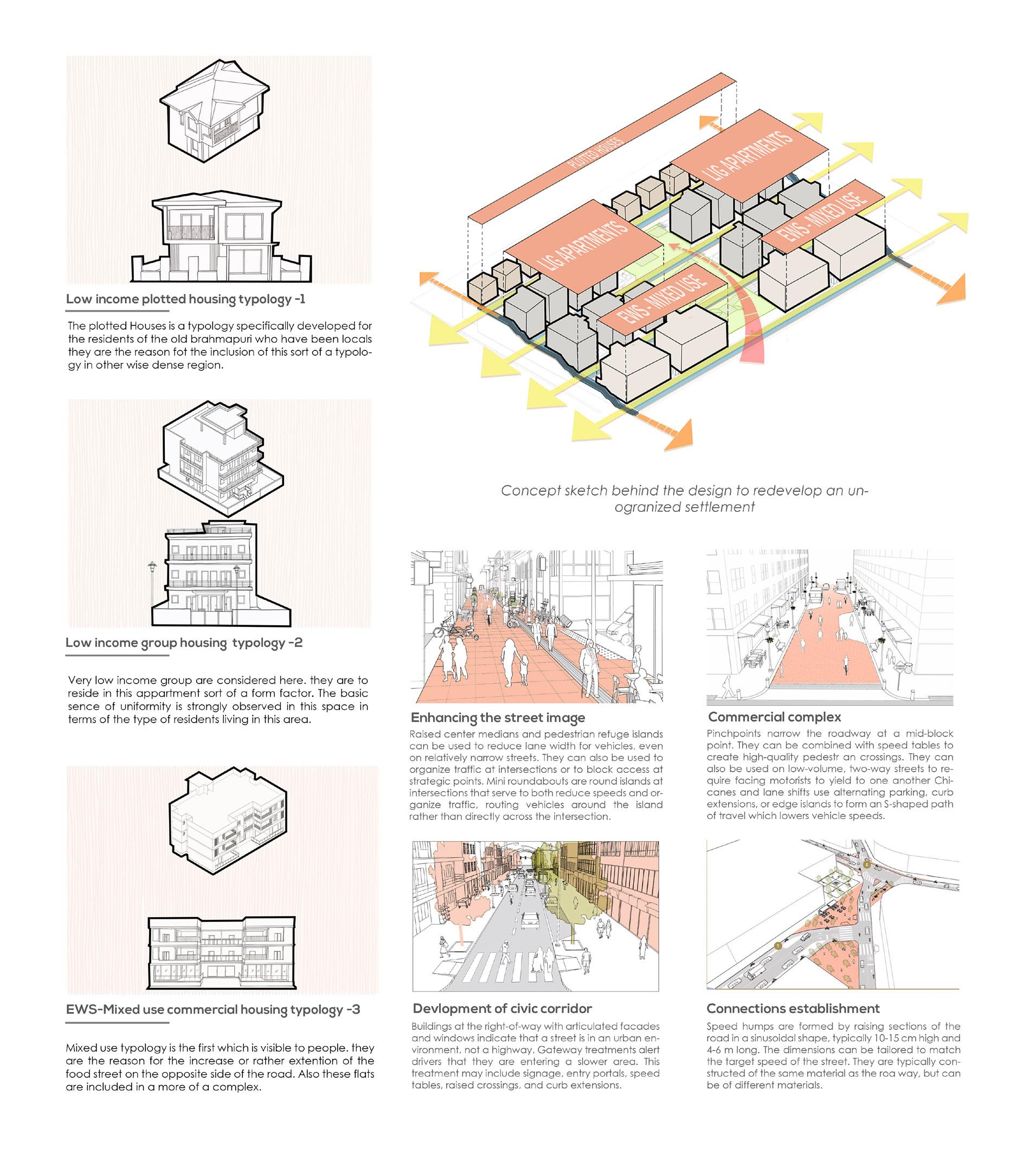 Concept sketch behind the design to redevelop an unogranized settlement Low income plotted housing typology -1 Enhancing the street imageTYPE : College academic project | Individual project