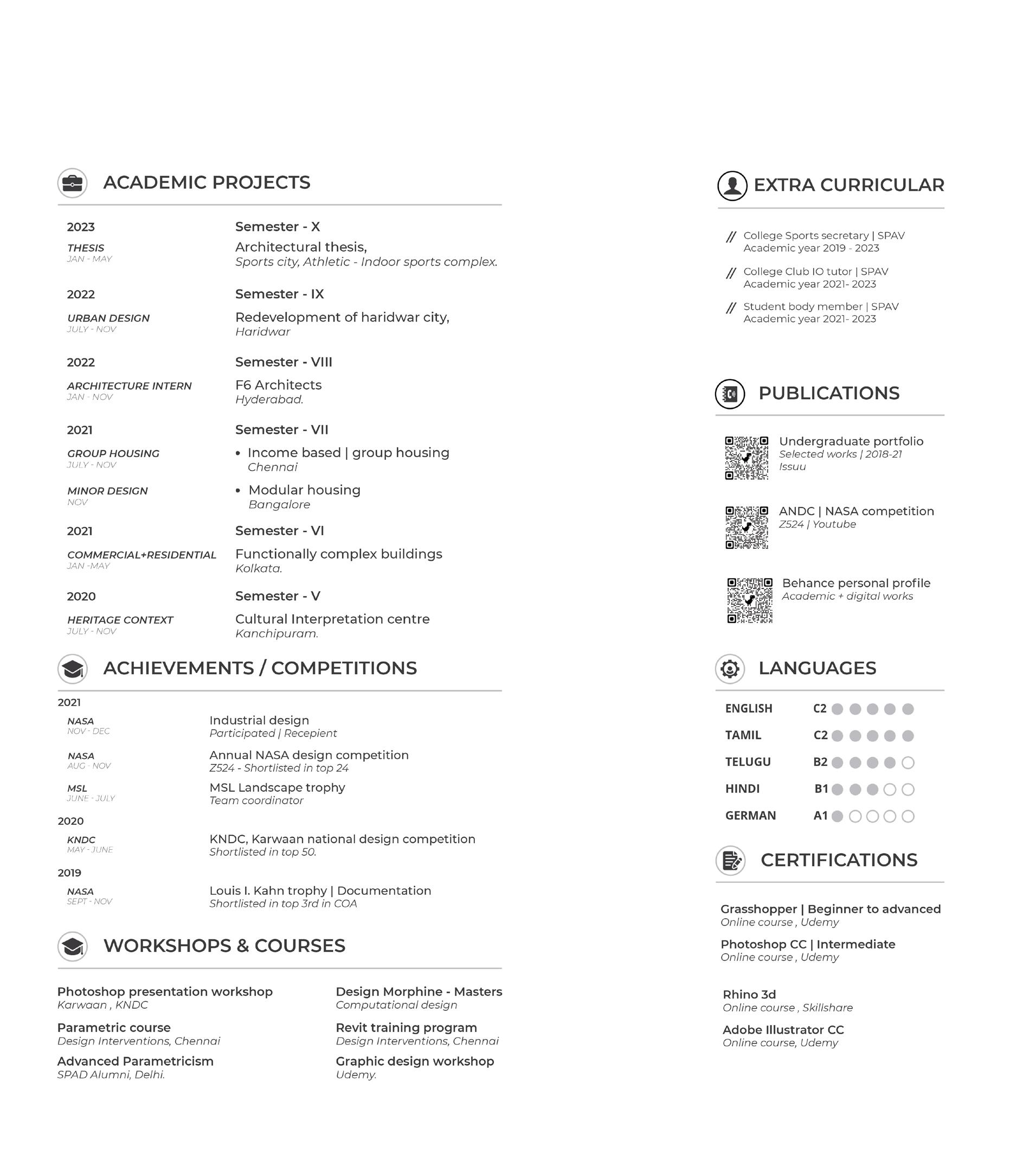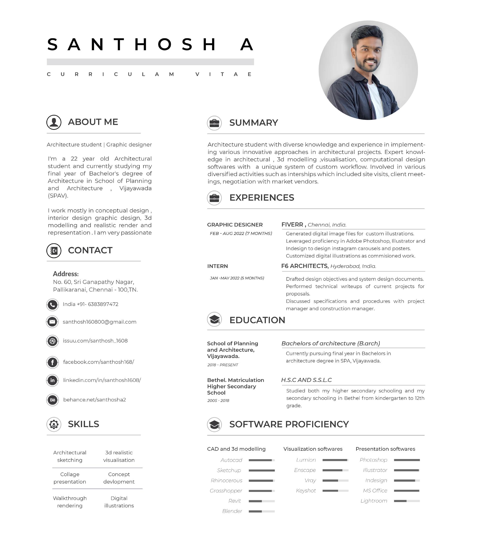 Architecture student with diverse knowledge and experience in implementing various innovative approaches in architectural projects. Expert knowledge in architectural , 3d modelling ,visualisation, computational design softwares with a unique system of custom workflow. Involved in various diversified activities such as interships which included site visits, client meetings, negotiation with market vendors.