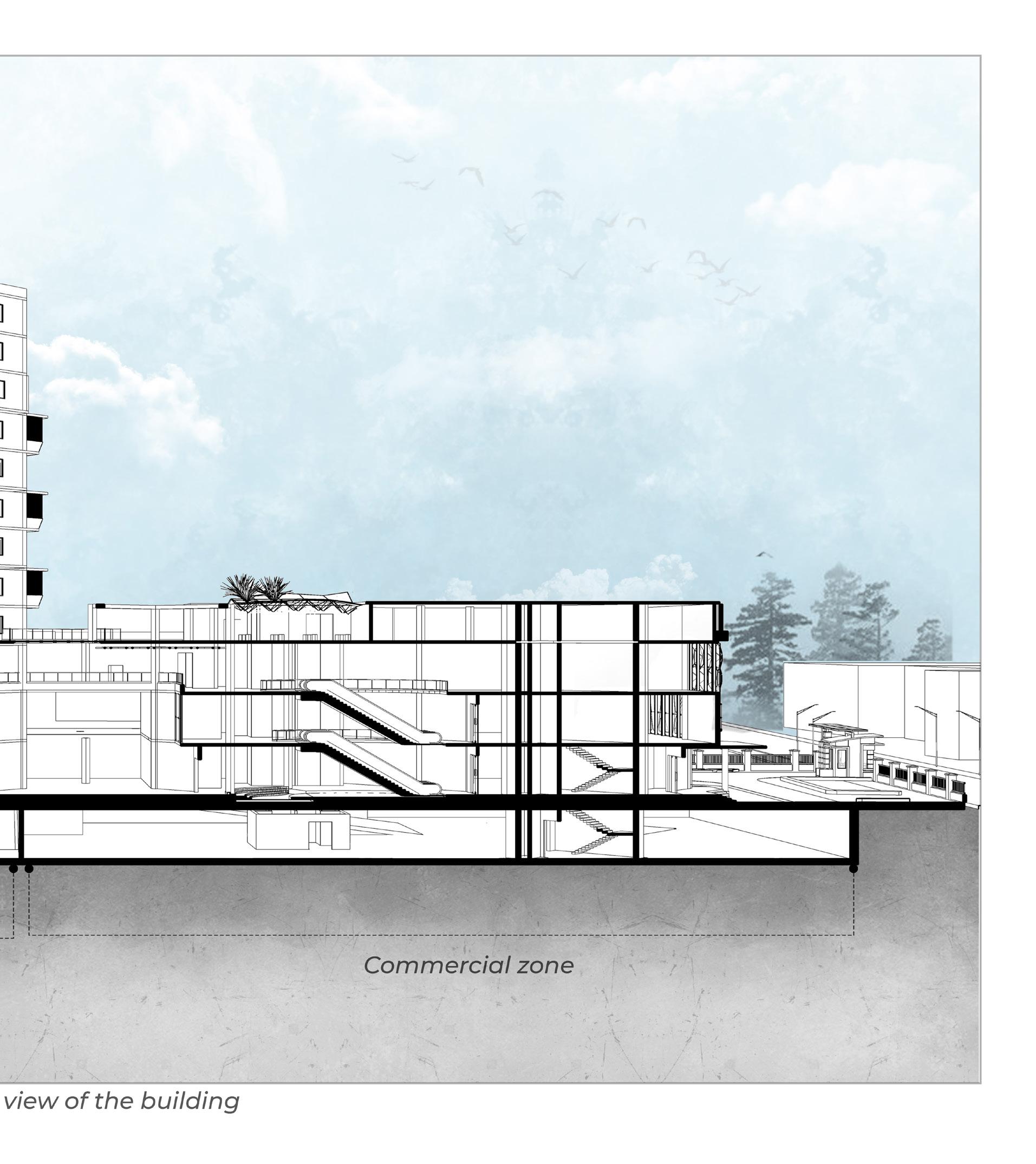 Mixed use typology is the first which is visible to people. they are the reason for the increase or rather extention of the food street on the opposite side of the road. Also these flats are included in a more of a complex.