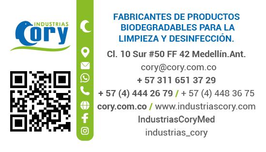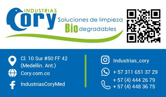 Industrias Cory es una empresa Colombiana, que desde 1994 se dedica al diseño, producción y comercialización de soluciones de limpieza y desinfección biodegradables, así como a la fabricación de campos y ropa quirúrgica para el sector salud. Contamos con un sistema integrado de Gestión de Calidad -ISO 9001-, Salud Ocupacional -OSHAS 45001- y Gestión Ambiental -ISO 14001- que nos permite garantizar altos estándares de calidad y seguridad en nuestros procesos contribuyendo al desarrollo sostenible con producción más limpia y generando un bajo impacto ambiental. Además, somos una empresa socialmente responsable con filosofía de proyección humana.