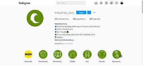 En redes sociales Industrias Cory se dirije a personas naturales y pequeños establecimientos comerciales, implementando un estilo gráfico más dinámico la cual la complementan los círculos, fondos con degradados con variación de color de acuerdo al producto y a lo que se quiera comunicar.