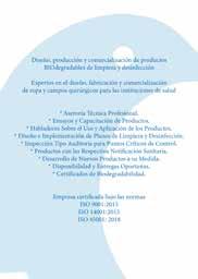 • Línea de productos Hospitalarios para el aseo, la desinfección y la esterilización de ambientes, superficies, equipos, prendas de lavandería y ropa y campos quirúrgicos en instituciones de salud.