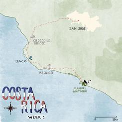 Trayectoria de viaje en la primera semana de mis vacaciones en Costa Rica