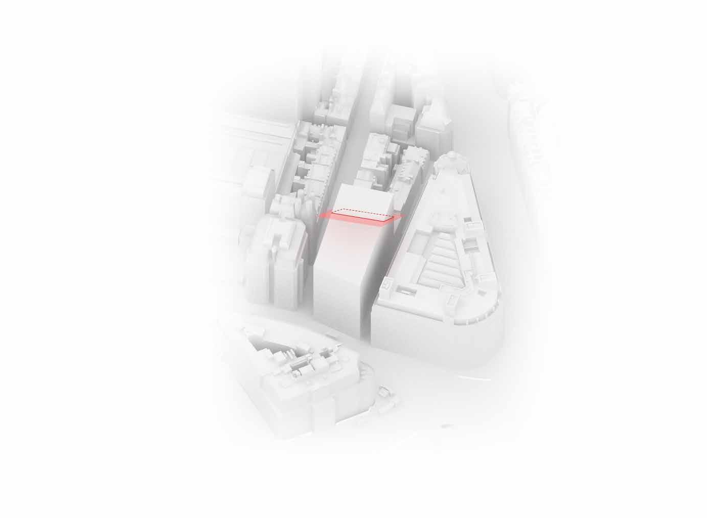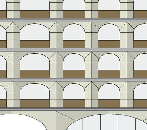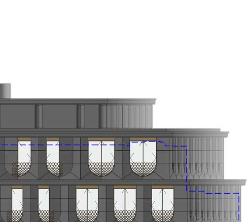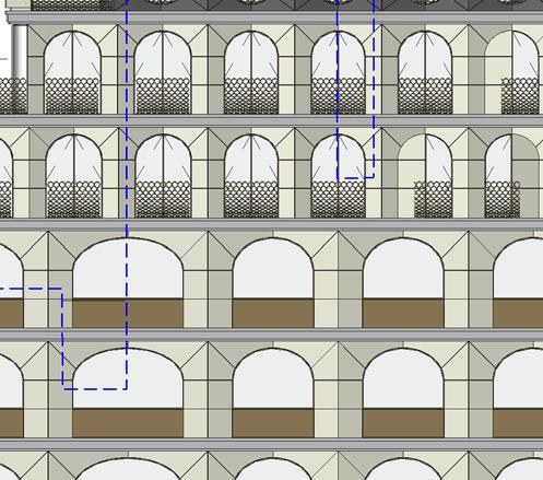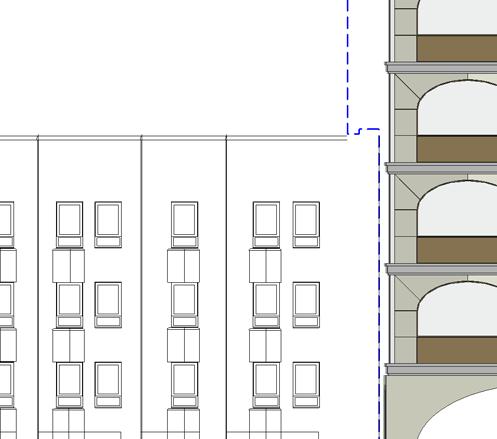 Similarly to the front façade, the Craven Street elevation maintains a tripartite subdivision. The arches on the ground floor follow the same height as on the main elevation while the difference in levels between the Strand Corner House Street is compensated through a plinth. This plinth provides a ‘‘podium’’ on which the proposed building stands.