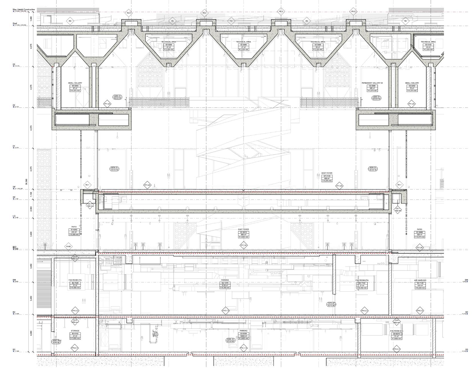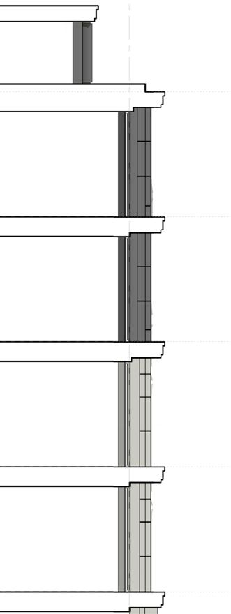 From the seventh to the eighth floor, the proposed façade articulation is similar to the one proposed for the Strand, however, some blind panels are incorporated to allow for flexibility in the internal layouts without compromising the concept of the scheme. This gesture also helps to increase the thermal efficiency of the envelope.
