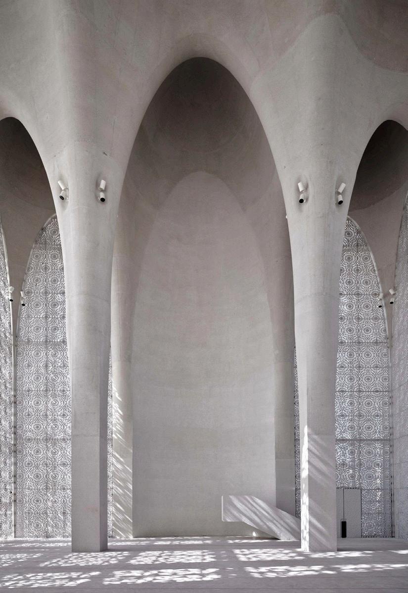 the modulation creates both a small shift the alignment of the arches with regards to the floors below, and also provides smaller façade modules for the residential use and therefore helps to create a more flexible internal layout.