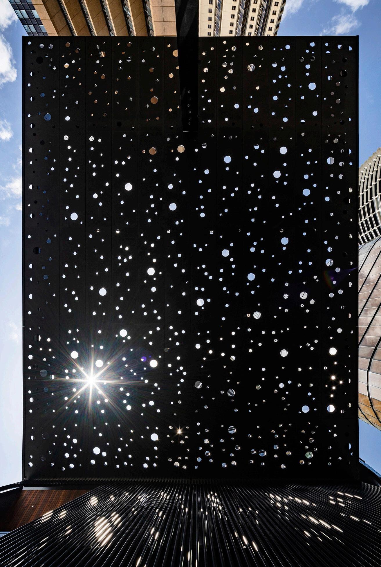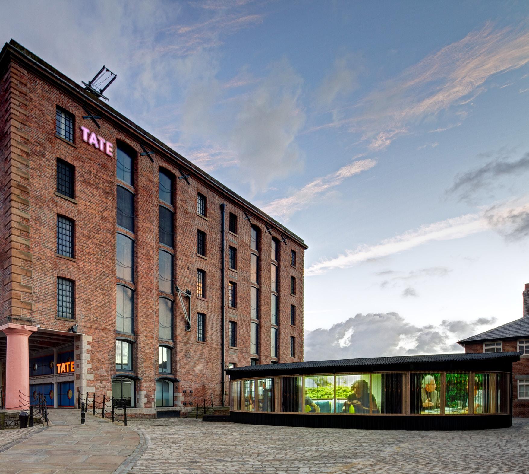 A collaboration with Doug Aitken, The Source is a temporary structure that was housed on Liverpool’s historic Albert Dock, as part of the Liverpool Biennial 2012/13. The project is an immersive installation comprising a series of filmed conversations about creativity between Aitken and some of the world’s most established creative individuals. The temporary structure is a deliberate device to separate the work from the traditional gallery space and to create a new cultural territory. The collage of imagery and interviews radiate within a diorama – a cylindrical chamber – inside which six projections are simultaneously displayed in six little rooms. As visitors cross the bridge over to Tate Liverpool, the structure is almost unavoidable. Although the projections are on the inside, they have a ghost image on the exterior – especially at night to attract people inside.