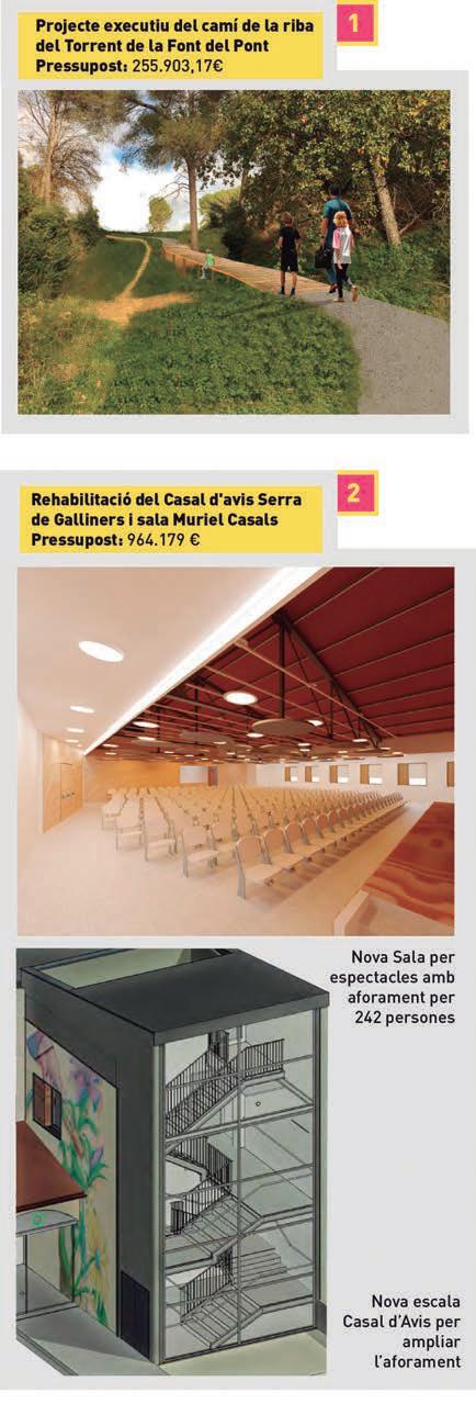 Principals projectes d'inversió del 2023 Pressupost municipal 325.502 € Millora integral de l'edifici del Casal Serra de Galliners i Sala Muriel 66.308 € Torrent de la Font del Pont 150.000 € Promoció de la mobilitat amb el carril bici de la ronda d'Arraona. +150.000 € d'inversions en centres educatius 150.000 € Per a la xarxa municipal d'aigua +1,5 milions € En accions culturals, ordenació urbana, joventut o mobilitat.