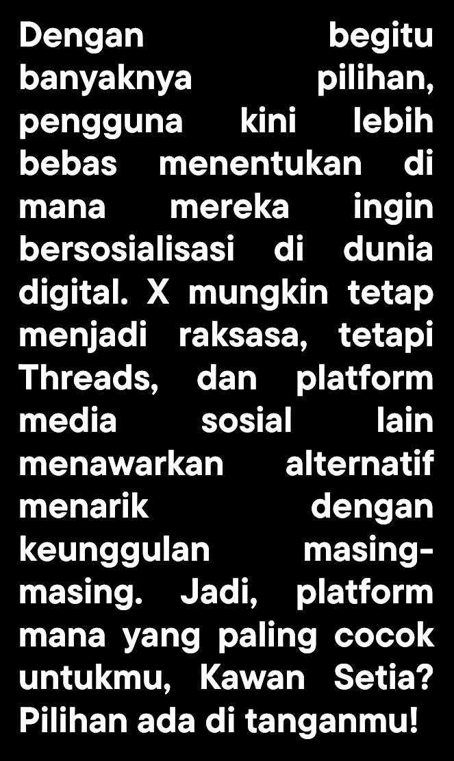 Tidak seperti X yang sering dipenuhi politik dan perdebatan panas, Threads lebih fokus pada konten ringan dan interaksi sosial yang positif.