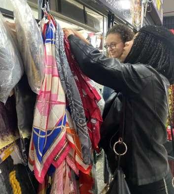 Turbantes e lenços encontrados em uma das lojas visitadas na Galeria.