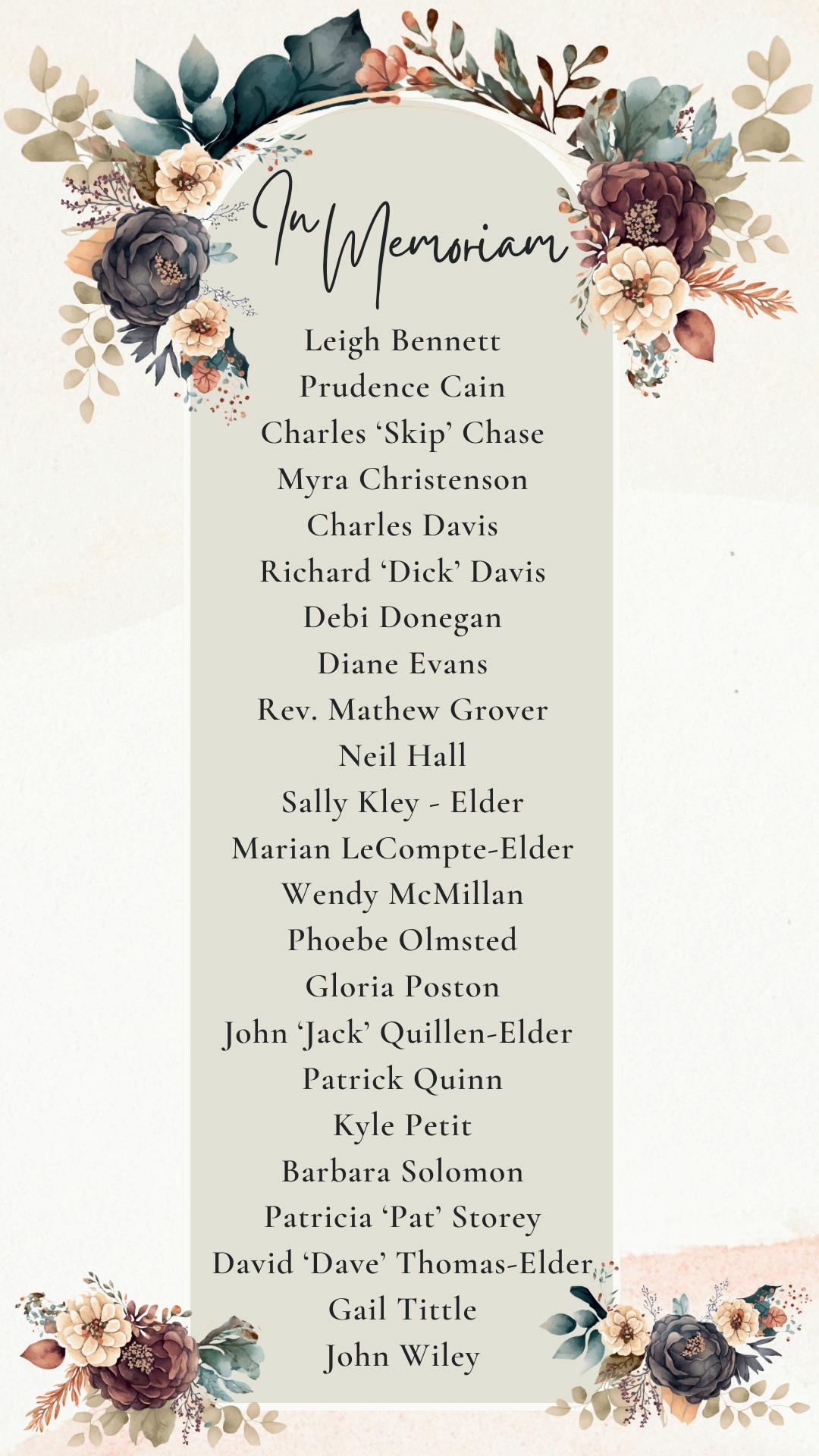 67 Deacons and Pastors at 33 locations in our community. memorial services 13