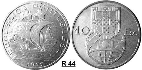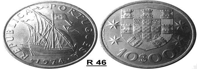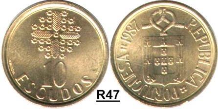 10 ESCUDOS – LATÃO-NÍQUEL Peso: 7,4 g Ø: 23,5
