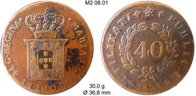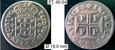 XXXX – DOIS VINTÉNS - 40 Réis CORÔA DE PRÍNCIPE Peso: 1,7 g Ø: 16 S/data P2