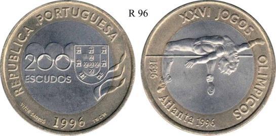 Pag. 84 REPÚBLICA SANTO ANTÓNIO 500$00 – Ag 500 Peso: 14 g Ø: 30 1995……Bela ….…………………………..…. R144.01 LOBO 1.000$00 – Ag 500 Peso: 28,2 g Ø: 40 1995……Sob …..……………..……………..…. R156.01 1996 JOGOS OLÍMPICOS - 1996 200$00 – BI-METÁLICA Peso: 9,8 g Ø: 28 1996……Bela ..…….……………………………... R96.02 1996…… BNC …..….……………………………... R96.03 BANCO DE PORTUGAL 500$00 – Ag 500 Peso: 14 g Ø: 30 1996……Bela ….…………………………..…. R145.01 FRAGATA D. FERNANDO 1 000$00 – Ag 500 Peso: 28,2 g Ø: 40 1996……Sob …..…………………..………..…. R158.01 NOSSA SENHORA DA CONCEIÇÃO 1 000$00 – Ag 500 Peso: 28,2 g Ø: 40 1996……Sob …. R159.01 1997 EXPO 98 100$00 – BI-METÁLICA Peso: 8,3g Ø: 25 1997……Bela ..…….……………………………... R91.01 200$00 – BI-METÁLICA Peso: 9,8 g Ø: 28 1997…… Bela ..…….……………………………... R97.01 1997…… BNC …..….…………………………….. R97.02
