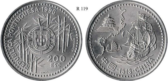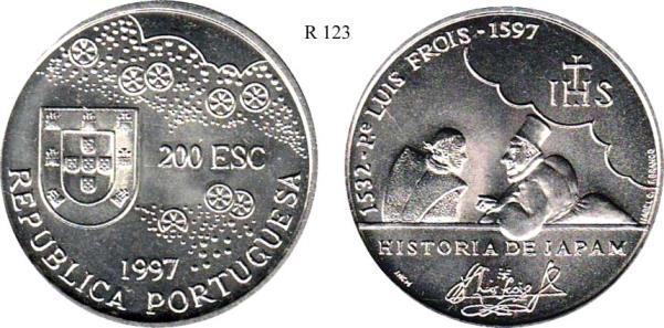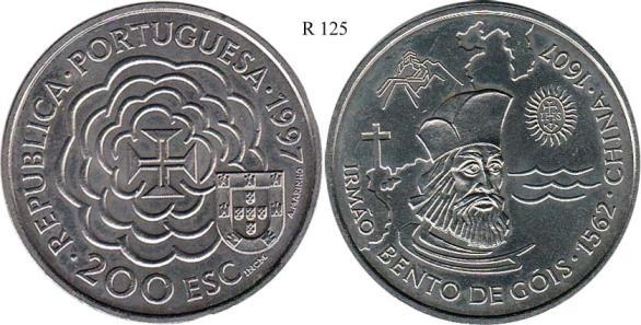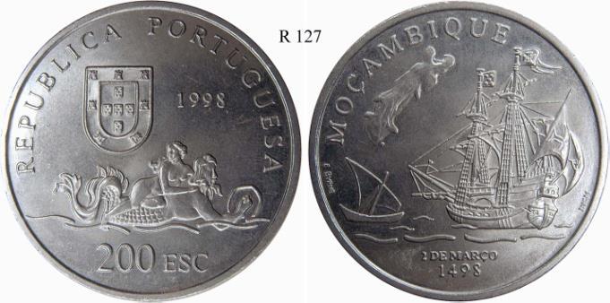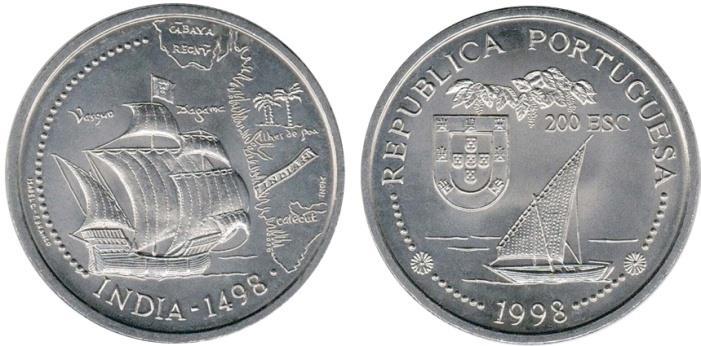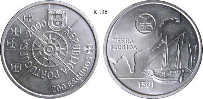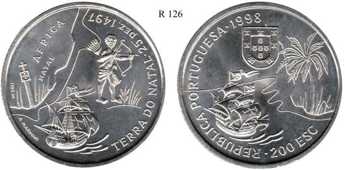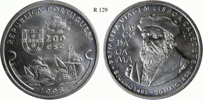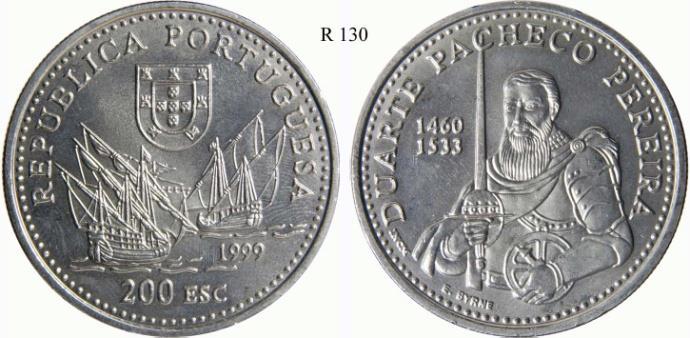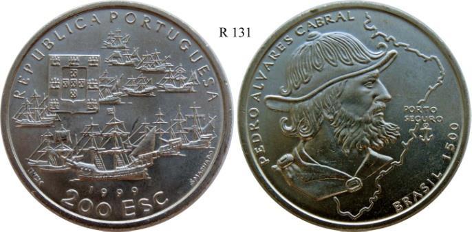 Pag. 92 REPÚBLICA IX SÉRIE 200$00 – CUPRO-NÍQUEL Peso: 21.0 g Ø: 36 mm TERRA DO NATAL 1998……Sob .…………………………..… R 126.01 X SÉRIE 200$00 – CUPRO-NÍQUEL Peso: 21.0 g Ø: 36 mm DUARTE PACHECO PEREIRA 1999……Sob .…………………………..… R 130.01 MOÇAMBIQUE 1998……Sob .…………………………..… R 127.01 PEDRO ÁLVARES CABRAL 1999……Sob .…………………………..… R 131.01 CHEGADA À ÍNDIA 1998……Sob ………….………………..…… R 128.01 BRASIL 1999……Sob R 132.01 VASCO DA GAMA 1998……Sob R 129.01 MORTE NO MAR 1999……Sob ………….………………..……… R 133.01