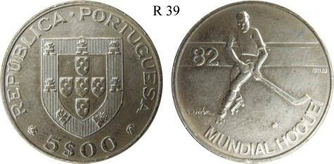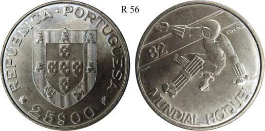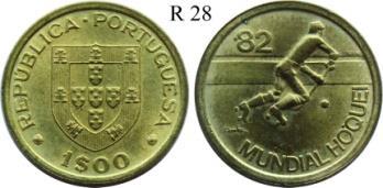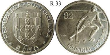 SÉRIES COMEMORATIVAS (1983-2001) APRESENTADAS CRONOLÓGICAMENTE 1982 – MUNDIAL DE HÓQUEI 1 ESCUDO - LATÃO-NÍQUEL Peso: 3.0 g Ø: 18 S/Data (1983) …Sob ……………………………….. R28.01 S/Data (1983) …BNC ...……………………………. R28.02 2$50 - CUPRO-NÍQUEL Peso: 3.5 g Ø: 20 S/Data (1983) …Sob ……………………………….. R33.01 S/Data (1983) …BNC ...……………………………. R33.02