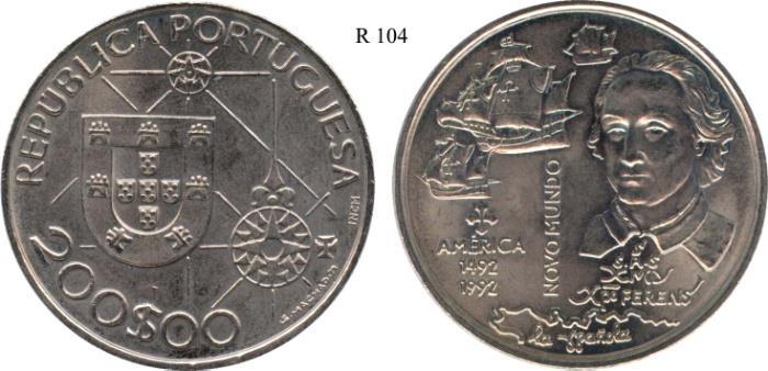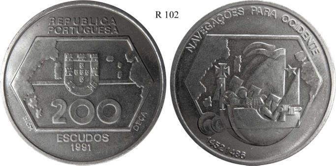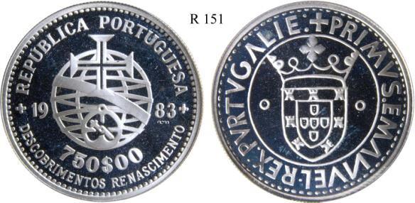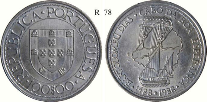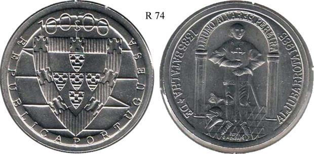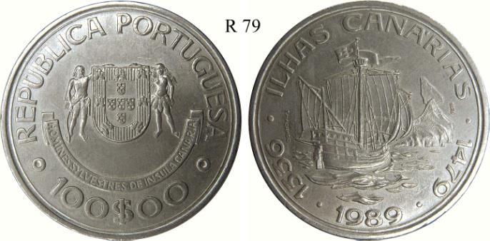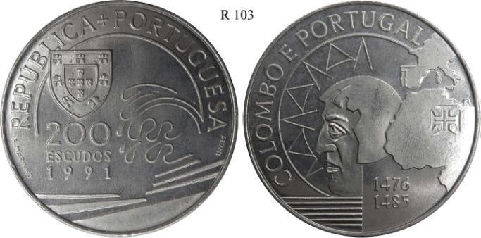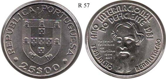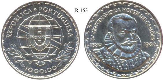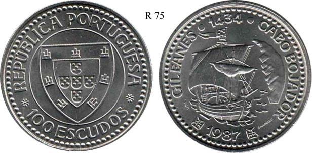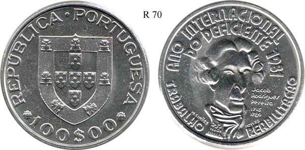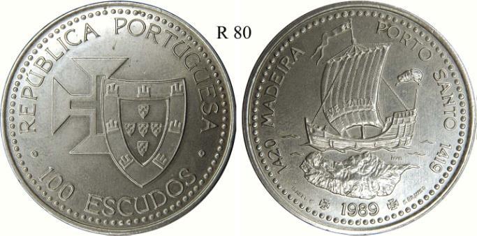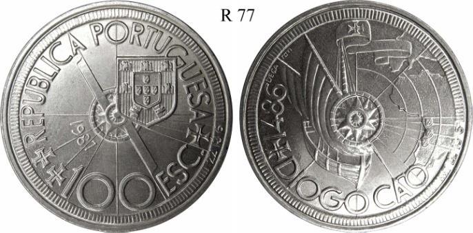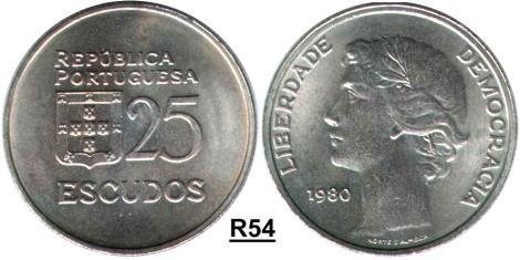 25 ESCUDOS – CUPRO-NÍQUEL Peso: 11 g Ø: 28,5 1980 Sob …………….…………………….. R 01.01 100 ESCUDOS – CUPRO-NÍQUEL Peso: 15 g Ø: 34 1980 Bela …………….…………………….. R 02.01