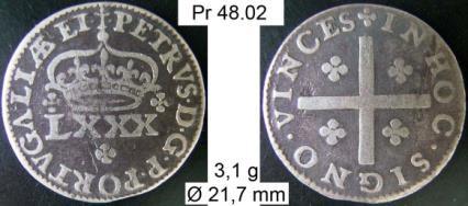 Pag. 9 PETRVS . II . D. G . PORTVG . ET . ALG . REX DECRETO DE 28 DE SETEMBRO DE 1683 CASA DA MOEDA DE LISBOA VINTÉM - 20 Réis REGIMENTO