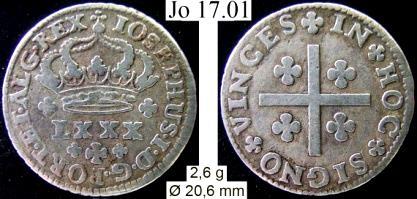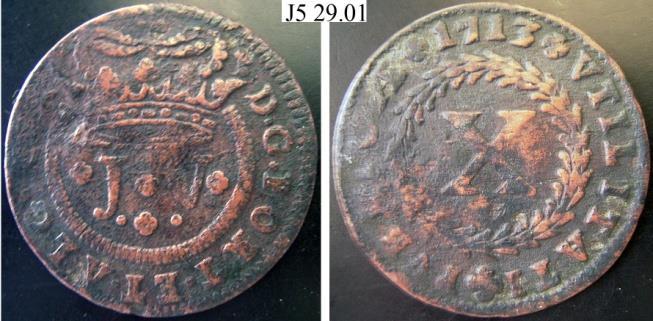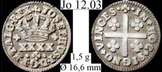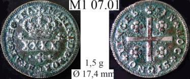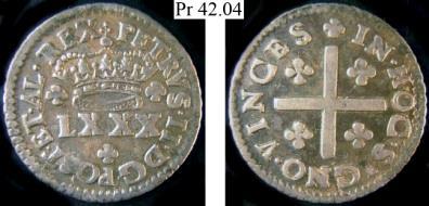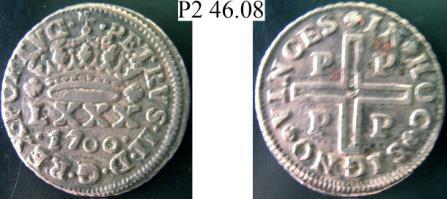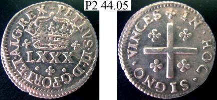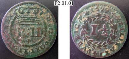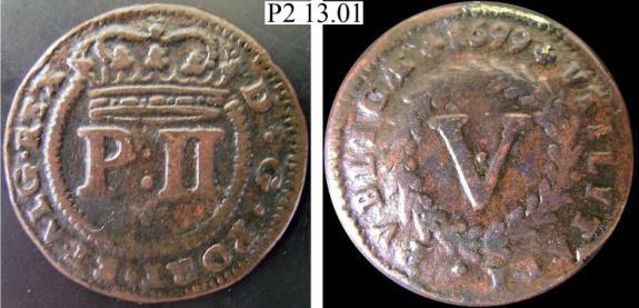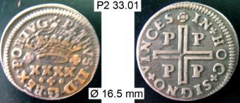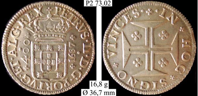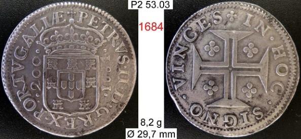 Peso: 8,2 g Ø: 29,7 1684 P2 53.03 CORÔA DE REI Peso: 8,7 g Ø: 29 1687 ………………………………...……………. P2 59.03
