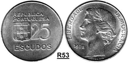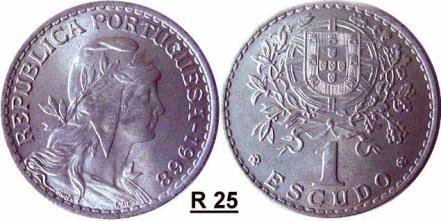 25 ESCUDOS –CUPRO-NÍQUEL Peso: 9,5 g Ø: 26