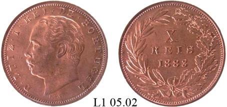 Cobre Real e Meio I ½ 1,5 Três Réis III 3 Cinco Réis V 5 Dez Réis X 10