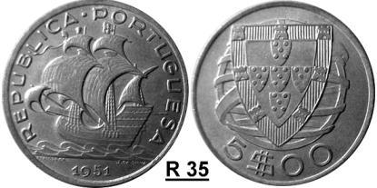 5 ESCUDOS – LATÃO-NÍQUEL Peso: 3,7 g Ø: 21