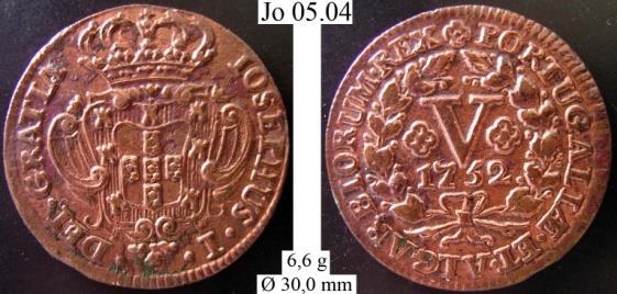 Pag. 15 IOANNES . V . D. G . PORT . ET . ALG . REX Peso: 5.5 g Ø: 29.3 1734 J5 18.10 X RÉIS – COBRE Peso: g Ø: 1732 J5 34.05 Peso:11.7 g Ø: 36.2 1736 J5 34.16 SÉRIE MÓDULO PEQUENO III RÉIS – COBRE Peso: 3.5 g Ø: 25.0 1734 J5 1.02 Peso: 3.5 g Ø: 25.0 1737 J5 13.05 Peso: 3.5 g Ø: 25.0 1744 …………………………………...………….. J5 13.08 V RÉIS– COBRE Peso:.5.7 g Ø: 27.8 1737 J5 19.04 Peso: 5.7 g Ø: 28.0 1744 …………………………………...………….. J5 19.13 X RÉIS – COBRE Peso: 13.3 g Ø: 30 1737 …………………………………...……………J5 35.01 Peso: g Ø: 34 1742 …………………………………...………….. J5 35.06