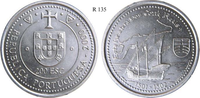 Pag. 93 REPÚBLICA XI SÉRIE 200$00 – CUPRO-NÍQUEL Peso: 21.0 g Ø: 36 mm TERRA DO LABRADOR 2000……Sob .…………………………..… R 134.01 TERRA FLORIDA 2000……Sob R 136.01 TERRA DOS CORTES-REAIS 2000……Sob .…………………………..… R 135.01 FERNÃO DE MAGALHÃES 2000……Sob R 137.01 CONJUNTOS DA INCM MOEDAS CORRENTES BNC 1986 5 Moedas ……………………………….. MS 01 1987 …. 6 Moedas ……………………………….. MS 02 1988 5 Moedas ……………………………….. MS 03 1989 …. 6 Moedas ……………………………….. MS 04 1990 …. 6 Moedas ……………………………….. MS 05 1991 7 Moedas ……………………………….. MS 06 1992 7 Moedas ……………………………….. MS 07 1993 7 Moedas ……………………………….. MS 08 1994 …. 7 Moedas ……………………………….. MS 09 1995 7 Moedas ……………………………….. MS 10 1996 8 Moedas ……………………………….. MS 11 1997 9 Moedas ……………………………….. MS 12 1998 …. 8 Moedas ……………………………….. MS 13 1999 9 Moedas ……………………………….. MS 14 2000 8 Moedas ……………………………….. MS 15 2001 …. 7 Moedas ……………………………….. MS 16 MOEDAS