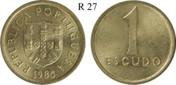 SISTEMA 1981-2001 1 ESCUDO – LATÃO-NÍQUEL Peso: 3 g Ø: 18 1981 Sob R27.01 1982 Sob R27.02 1982 e.v. R27.03 1983 Sob ……………………………… R27.04 1984 Sob R27.05 1985 Sob ……………………………… R27.06 1986 Sob R27.07 MÓDULO REDUZIDO Peso