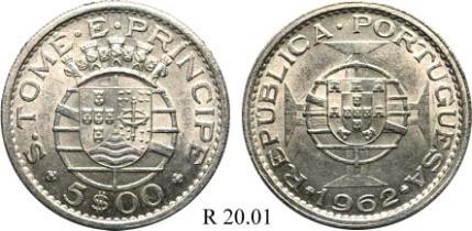 R 08.01 1958 Bela R 09.01 PRATA 3$00 – 3 ESCUDOS Peso: 3.5 g Ø: 20 6$00 – 6 ESCUDOS Peso: 7.0 g Ø: 25