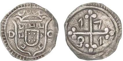 (1706-1750) Neste reinado não houve emissão de moedas para Angola embora alguns autores considerem que as moedas de V, X e XX Réis cunhadas para o Brasil circularam também nesta colónia. Além de não haver achados, não há qualquer documento que suporte esta afirmação