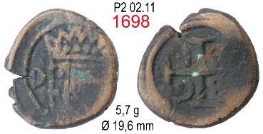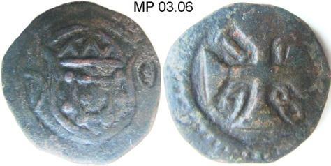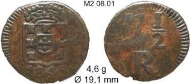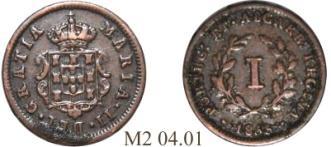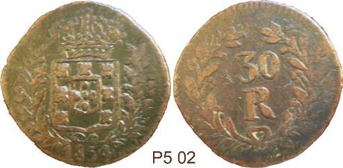 CASA DA MOEDA DO PORTO (PPPP) V RÉIS – COBRE Peso: 2,8 a 4,2 g Ø: 25 1695/96 …………………………………………… P2 01 X RÉIS – COBRE Peso: 7,6 a 9,3 g Ø: 31 1693/99 …………………………………………… P2 02 XX RÉIS – COBRE Peso: 15,4 g Ø: 37,8 1699 P2 02.10 Mandadas circular no Brasil pela Carta Régia de 10FEV1704