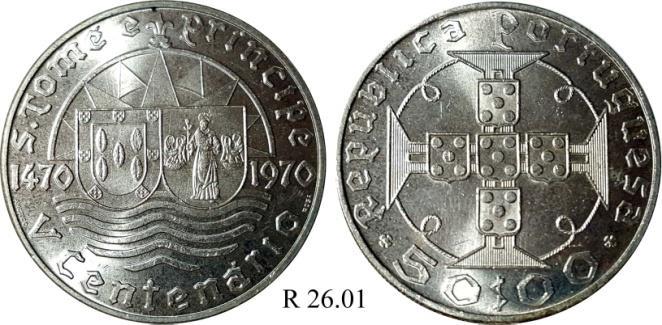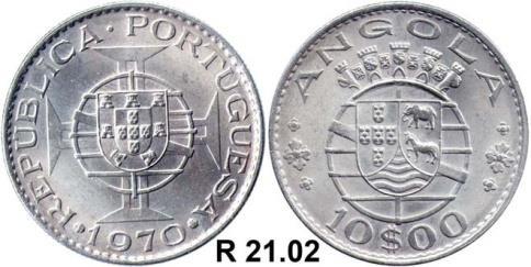 CUPRO-NÍQUEL 2$50 - 2½ ESCUDOS Peso: 3.5 g Ø: 20 5$00 – 5 ESCUDOS Peso: 7.0g Ø: 25 10$00 – 10 ESCUDOS Peso: 9.0g Ø: 28 1970 Bela R 11.01 1970 Bela ..…………………………… R 13.01 1970 Bela