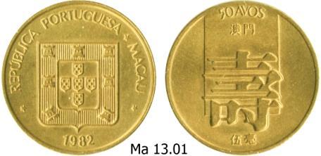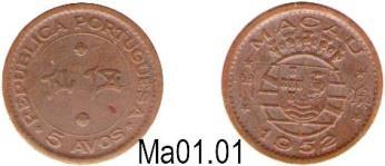 Como à data da introdução deste sistema a PATACA valia 5$85 (na prática = 6$00), substitui-se a PATACA pela moeda de 6$00, criando-se assim um peculiar sistema em que as moedas cunhadas eram sub-múltiplos de 6$00. Tínhamos também os múltiplos nas notas de 30$00 e 60$00, assim como notas de 100$00 e 500$00 Devido à paridade RUPIA/PATACA, aconteceu o mesmo na ÍNDIA em que a RUPIA foi igualmente substituída por uma moeda de 6$00. BRONZE