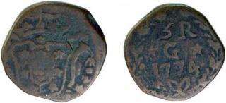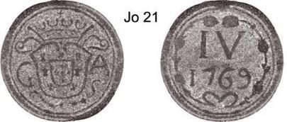 Não foi emitida qualquer moeda para a colónia. Porém, como no comércio corria muita moeda de prata estrangeira, foi decidido carimbá-la toda para legalizar o seu curso.