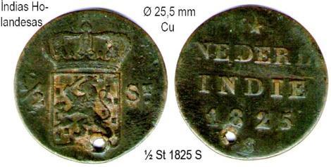 <>Até 1945<> COMPANHIA DAS ÍNDIAS HOLANDESAS 1 DUIT - 1790 ÍNDIAS HOLANDESAS 1 FLORIM (Gulden) = 1 PATACA 1 AVO – COBRE ½ STUIVER/1825 1 CENT/1914 1 CENT/1942 As moedas de ½ Cent, cunhadas até 1945, corriam aos pares, coladas com uma resina vegetal e valiam 1 AVO 2,5 AVOS - COBRE 2½ CENTS/1858 2½ CENTS/1945