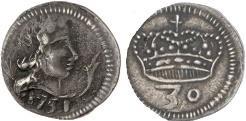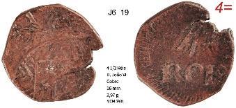 X RÉIS – COBRE Peso: 13,3 g Ø: 30 1737 J5 02.05 Corresponde ao J5 35.01 do Reino