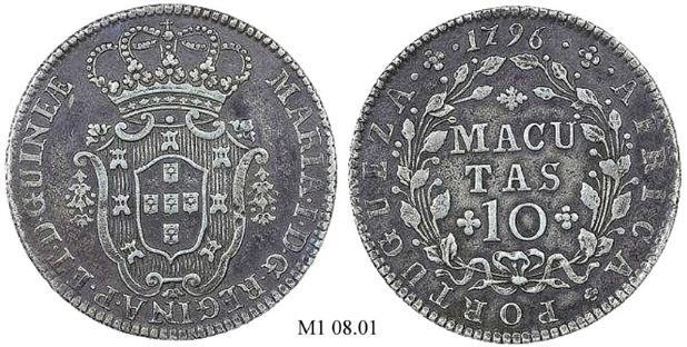 O reinado de D. Maria II decorreu numa quase permanente guerra civil que arruinou as finanças públicas. Cunhar moeda para as colónias não era uma prioridade e, para Angola, apenas foi emitida a moeda de Meia Macuta durante os últimos anos do reinado. Fruto dessa falta de meios foi também a aplicação do carimbo “ESCUDETE COROADO” sobre toda a moeda circulante a fim de lhe duplicar o valor.