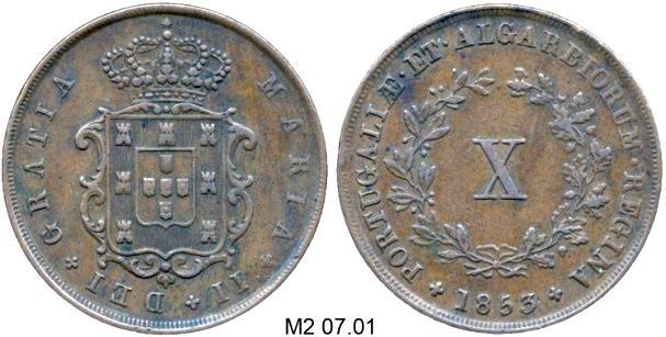 D. PEDRO V (1853-1861) CASA DA MOEDA DE LISBOA ½ MACUTA-COBRE Peso: 19 g Ø: 37 1860 … P5 01.02 1 MACUTA - COBRE Peso: 38 g Ø: 38 1860 P5 02.02 CARIMBO ESCUDETE COROADO EDITAL DE 21 DE MARÇO DE 1853