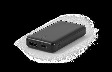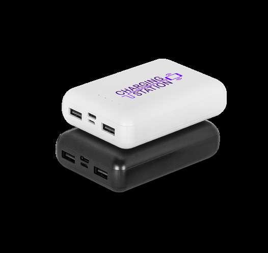 Power bank made from recycled ABS (100% rABS). Super light and extremely small, it’s the ideal solution to carry with you at all times and guarantee the necessary charge in emergency situations. Portable battery with 4,000 mAh capacity, charge level indicator, one USB-C input port and one USB-A output port. Includes a USB-C charging cable. Supplied in a recycled kraft paper gift box.
