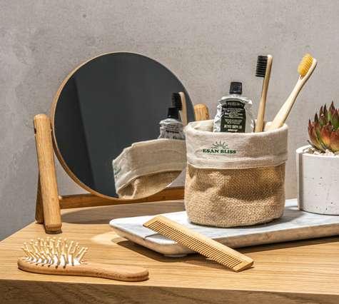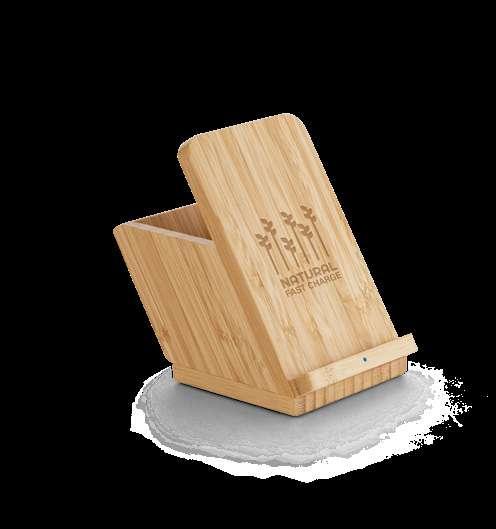 Wireless earphones made from recycled ABS (100% rABS) and a bamboo case with a lid, with BT v5.3 transmission. The charging case has a 300 mAh battery, offering an autonomy of approximately 10 hours. The earphones allow you to answer calls, control the volume and playlist on your mobile device. Includes a USB-C charging cable made from TPE recycled (100% rTPE). Supplied in a kraft paper gift box.