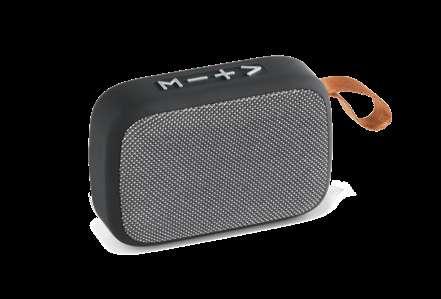 Portable speaker made from recycled aluminium (100% rAL) and recycled ABS (100% rABS). With BT v5.0 wireless transmission and micro SD card reader. With 3W of sound power and a 400 mAh battery, it has an autonomy of approximately 3 hours. It allows you to answer calls thanks to its built-in microphone, control the volume and playlist of your mobile device. Includes a USB-C charging cable. Supplied in a recycled kraft paper gift box, which can be reused as a smartphone holder.