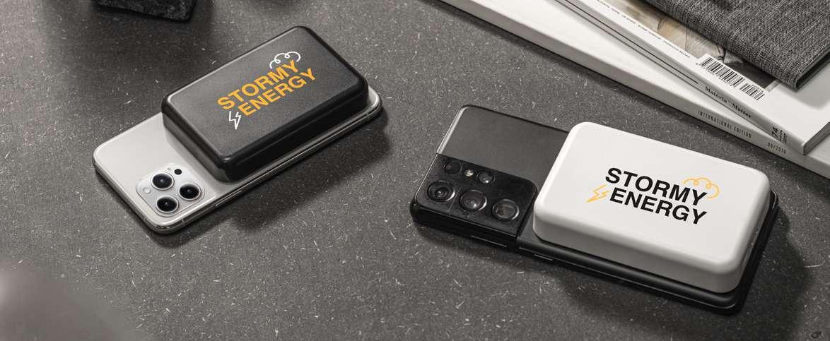 Magnetic power bank in recycled ABS (100% rABS) with super-fast wireless charger. This portable battery, with its modern design, is practical and very easy to use on a daily basis. Thanks to its magnetic capacity and wireless charging, it’s easy to attach to your mobile device. It includes an extra magnetic ring for smartphones that don’t have the magnetic function. It has a capacity of 5,000 mAh, a USB-C input/output port with PD 20W fast charging and a maximum power of 15W for super-fast wireless charging. Compatible with mobile devices with wireless charging technology. Includes a USB-C fast charging cable. Supplied in a recycled kraft paper gift box.