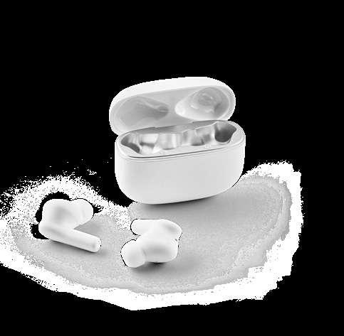 Wireless earphones made from recycled ABS (100% rABS), with BT v5.4 transmission. The charging case has a digital display that shows the charge level and has a capacity of 200 mAh, offering an autonomy of approximately 4 hours. The earphones allow you to answer calls, control the volume and playlist on your mobile device. Includes a USB-C charging cable. Supplied in a kraft paper gift box.