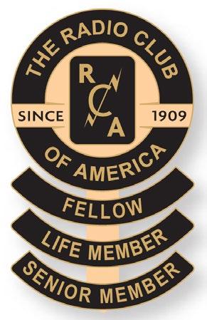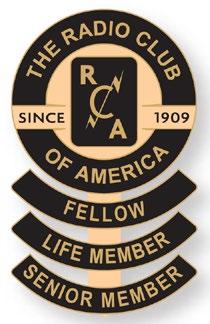 • $9.95 for the standard pin • $3 per bar for Life Member, Senior Member, and Fellow bars ORDER AT: www.radioclubofamerica.org/about-us/rca-memorabilia Prices include shipping & handling.