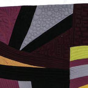 CONTRAST IN QUILTING can take many forms. I find that the exploration of colors, shapes, and their intertwined relationships create the most vibrant and fascinating contrasts. Odd Man Out, part of my Color Studies Series, uses complementary colors, repetitive shapes, and the contrast between monochrome and color. The opaque nature of the material allows me to concentrate on bold forms to command attention. The result is a piece meant to draw the viewer in, illuminating specific and close elements of the individual squares. My Color Studies Series was inspired by Nancy Crow’s use of bold colors and complex geometric patterns and lines, and builds upon my artistic impulse to find inspiration in the unexpected.