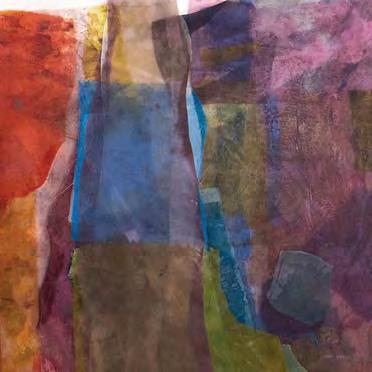 IN THIS MOST TURBULENT and toxic time, I am troubled by the injustice and inhumanity that pervades our society. I wonder when the limits of delusion and denial will be reached. Unsilent is my attempt to convey visually the current movement to promote truth, acceptance, equality, and our common humanity. Change is happening. Quiet whispers emerge from crowds of complacency, conveying hope and optimism. The clear colors transcend the murky “colorswithout-names” and desaturated complements. Hope and optimism shine through in this collage of hand-painted and hand-dyed silk organza textiles and the use of color and saturation.