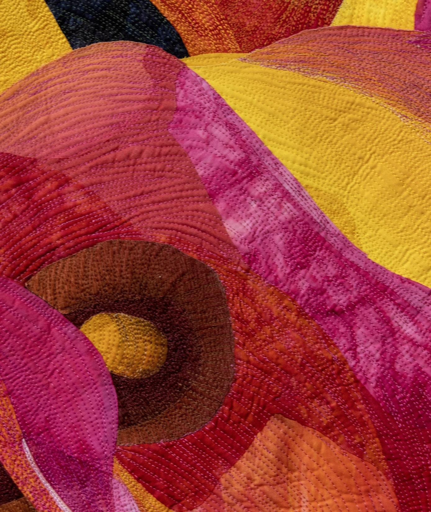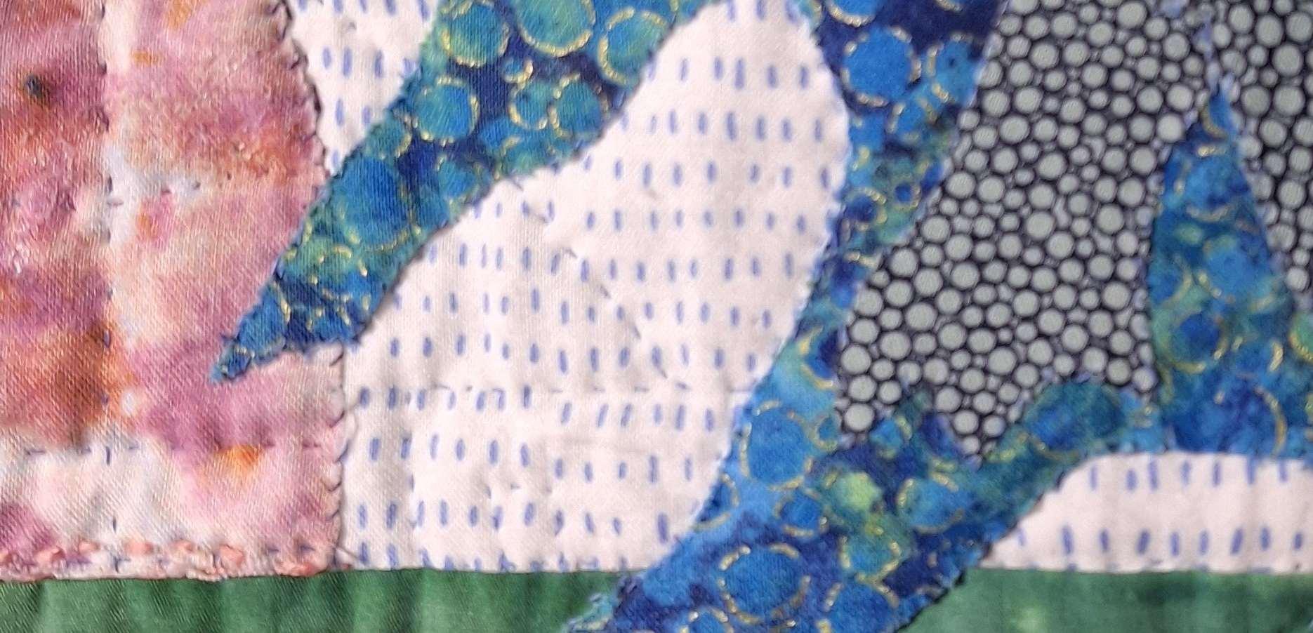 Mindfulness,intuitivebatik,hand-dyed fabric,free-motionquilting.